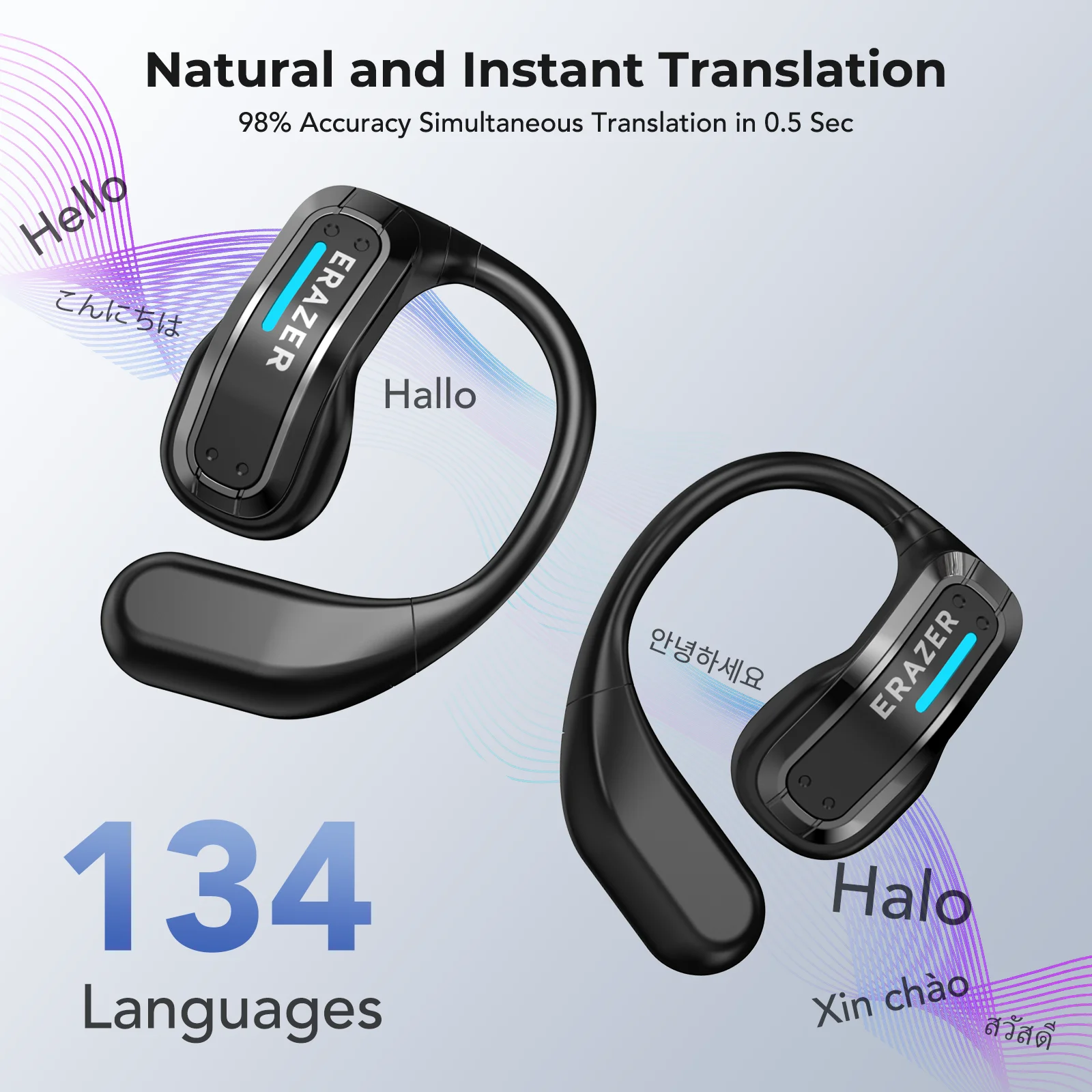 Nuestros auriculares con IA traducen la voz en tiempo real y son compatibles con más de 137 idiomas. Claridad de voz natural y fluidez de conversación: viajes, reuniones y chats sin restricciones.