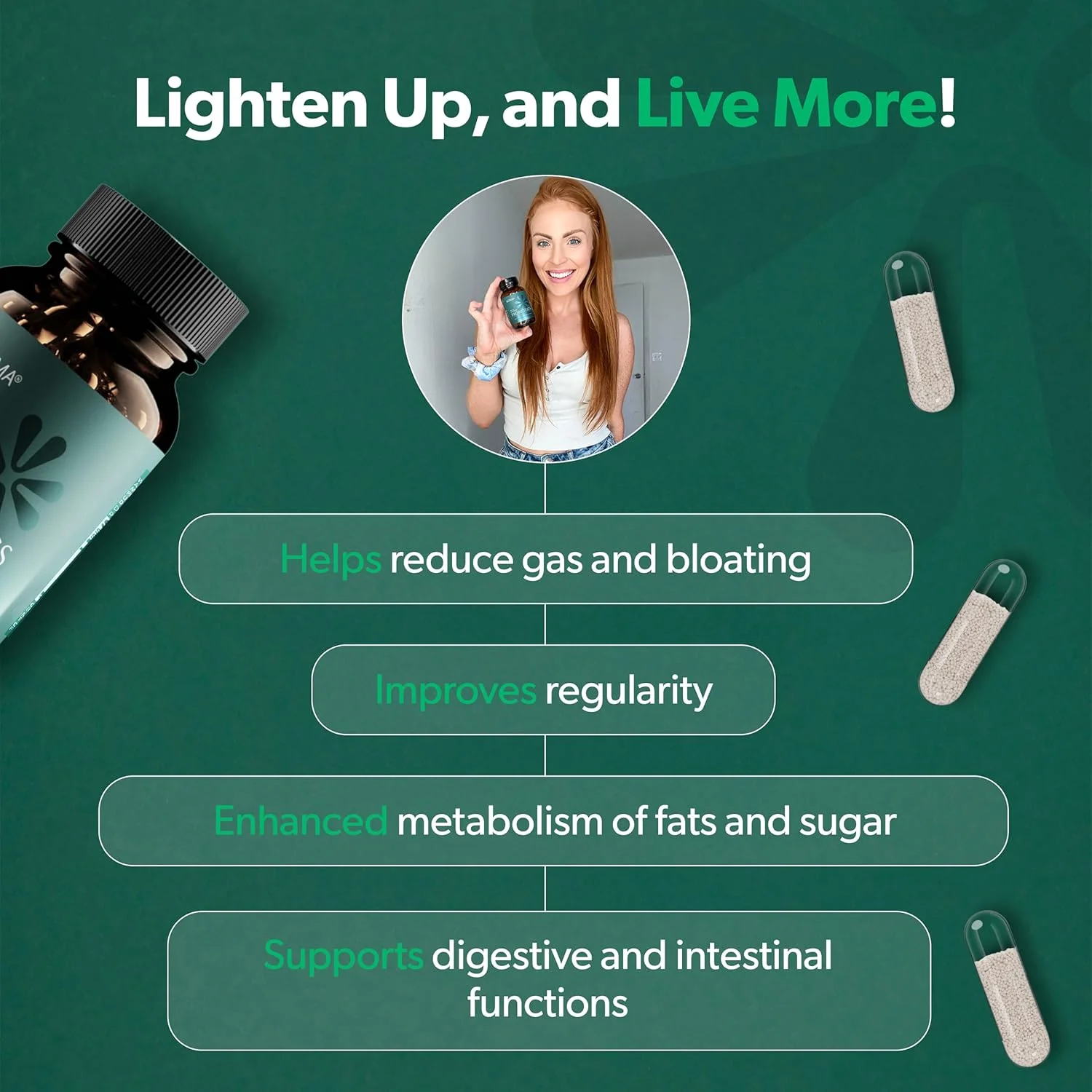 Las cápsulas cuentan con un diseño de liberación controlada que protege los probióticos y enzimas de la acidez del estómago. Esto asegura que los ingredientes actúen directamente en el intestino grueso (donde se concentra la flora intestinal), evitando su degradación prematura y maximizando su biodisponibilidad —superando la efectividad de cápsulas sin esta tecnología.