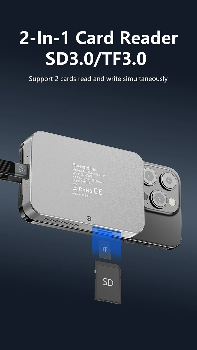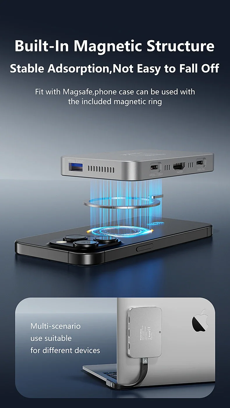 HUB magnético USB C tipo C 8 en 1 de aleación de aluminio
