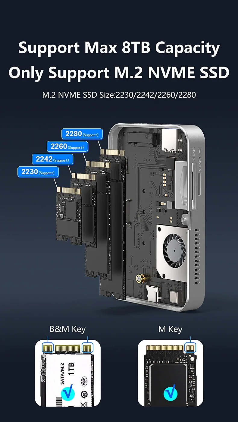 Caja SSD M.2 NVME: compatible con 8 TB máx., tamaño 2230/2242/2260/2280