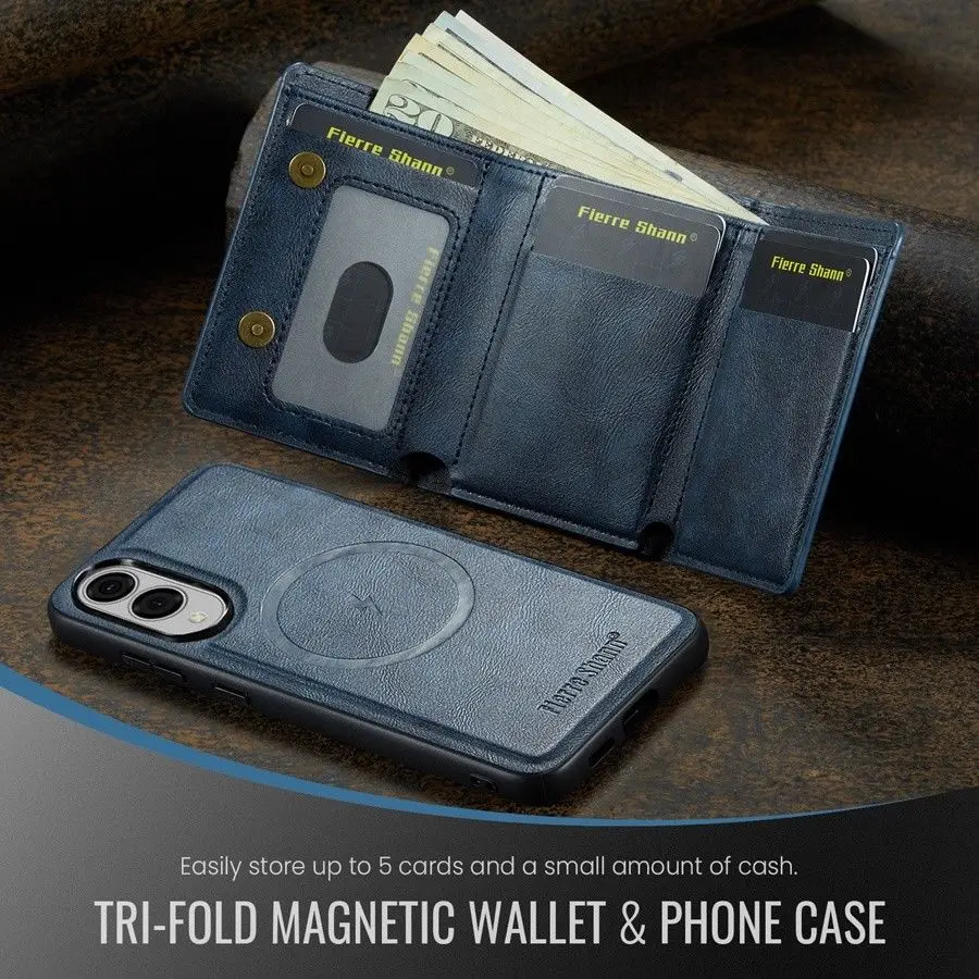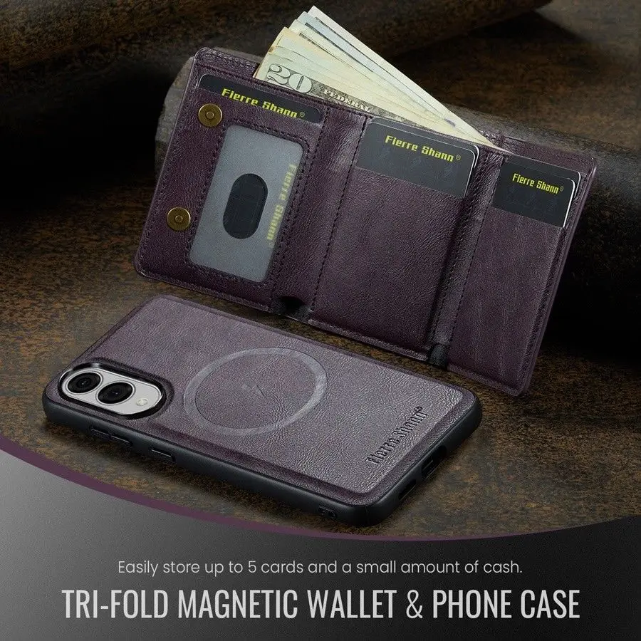 1.Estuche de diseño separado 2 en 1 con imán fuerte:Cartera de cuero desmontable y funda magnética para teléfono, soporte estable para patadas.