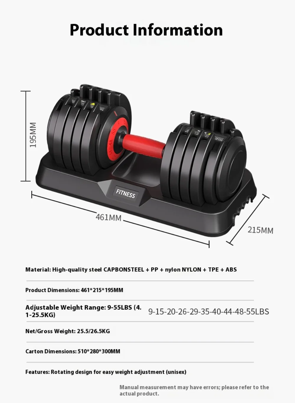 | Adjustable Range | 9-55lbs (4.1-25.5kg), 9-15-20-26-29-35-40-44-48-55lbs |