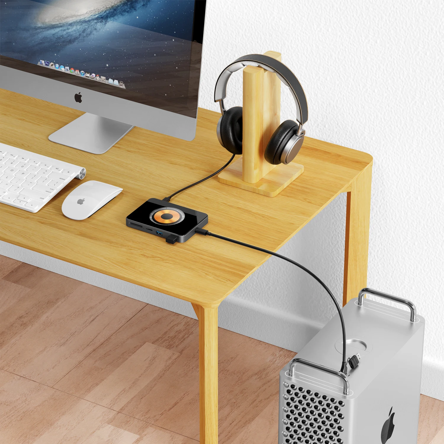 3.Compatible con auriculares tipo C y discos U: con 2 puertos de transferencia de datos USB C 2.0 estándar que admiten el protocolo de audio USB, este concentrador USB3.0 es compatible con auriculares tipo C, discos U y otros tipos C dispositivos.