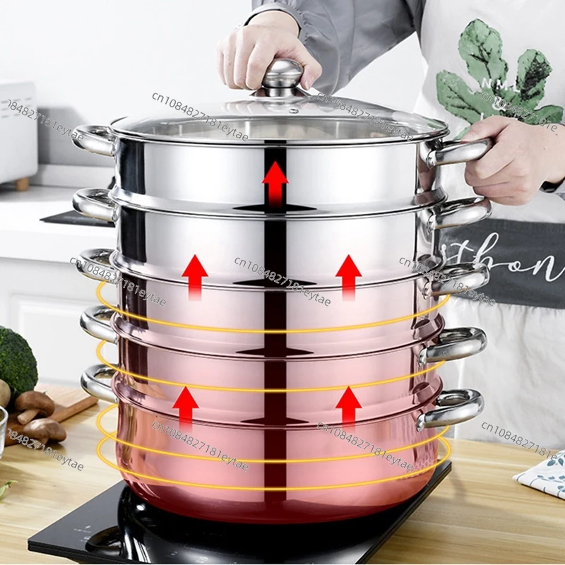 para Cocina de Inducción, Estufa de Gas, Olla Vaporera de 28 cm